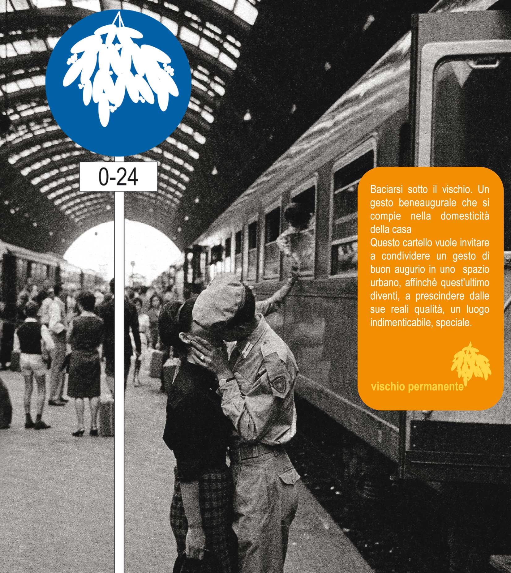 Questo cartello vuole invitare a condividere un gesto di buon augurio in uno spazio urbano, affinchè quest'ultimo diventi, a prescindere dalle sue reali qualità, un luogo indimenticabile, speciale.