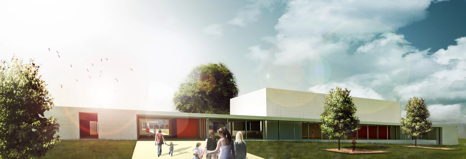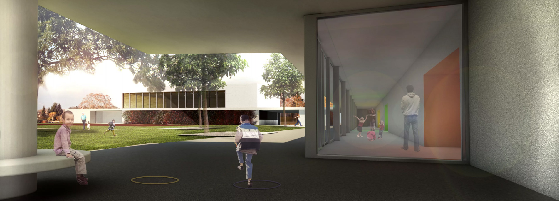 La proposta per la nuova scuola di Vernay ambisce a instaurare nuove relazioni con il contesto rurale dell'area e con l'edificio scolastico esistente. I nuovi volumi di progetto formano, con la preesistenza, una corte aperta in cui i bambini possano giocare e incontrarsi, uno spazio in cui il paesaggio forma la quarta parete.